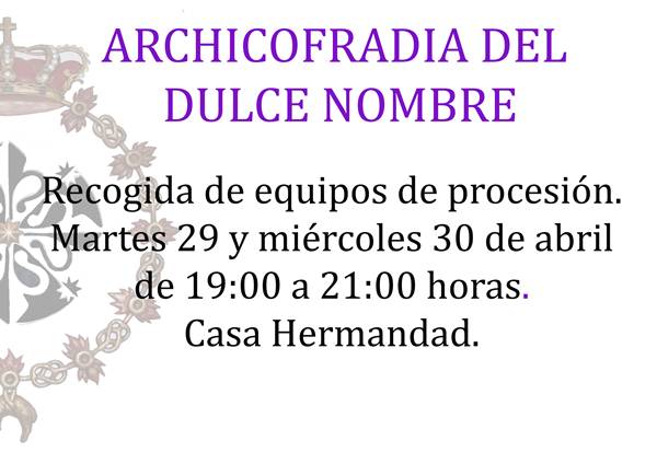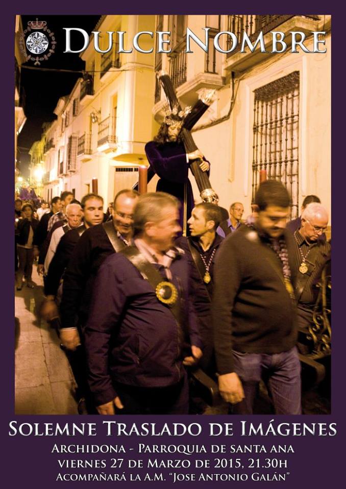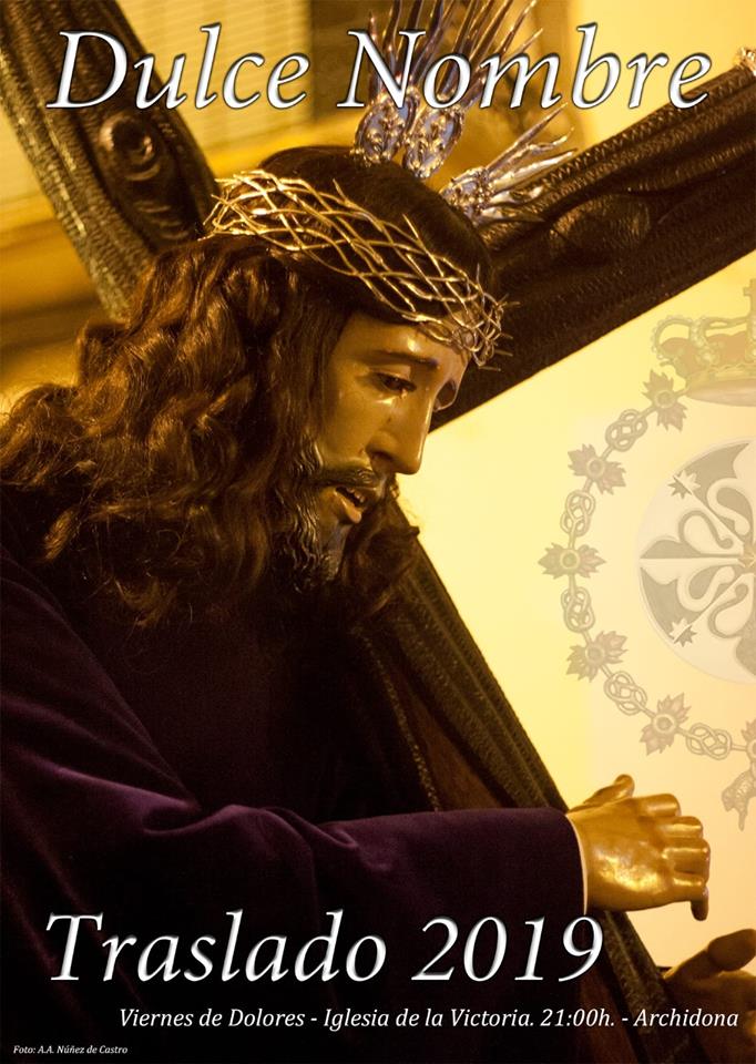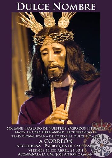 El próximo Viernes de Dolores, 11 de abril, tendrá lugar el Solemne Traslado de Imágenes de la Archicofradía del Dulce Nombre. En esta ocasión saldrá de la Parroquia de Santa Ana, donde actualmente se encuentran nuestros Titulares. Como novedad, el Dulce Nombre recupera su ancestral forma de ser portado, A CORREÓN, con unas nuevas andas adaptadas para la ocasión.
