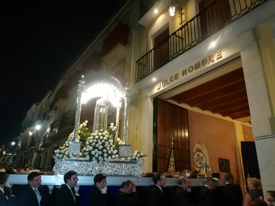 Nuestros Sagrados Titulares ya esperan en la Casa Hermandad. En la noche de ayer tuvo lugar el Solemne Traslado en el cual, como novedad, el Dulce Nombre fue portado como antiguamente, A CORREÓN. Un mar de gente acompañó en todo momento al cortejo que vio cómo Archidona recibía con gran espectación el paso de nuestra Archicofradía.