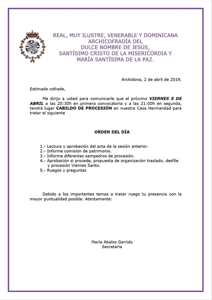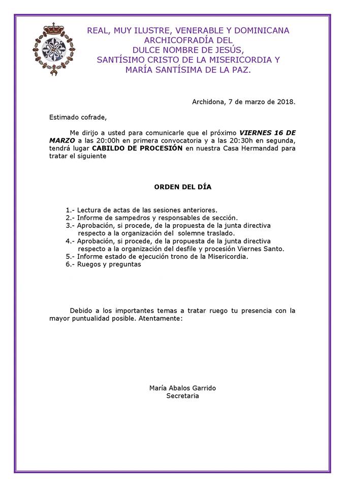 Tras este acto empezará el cabildo ordinario de procesión donde se tratará importantes temas sobre nuestro desfile procesional de 2014.