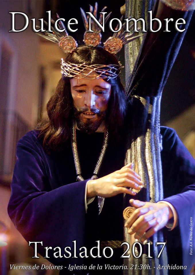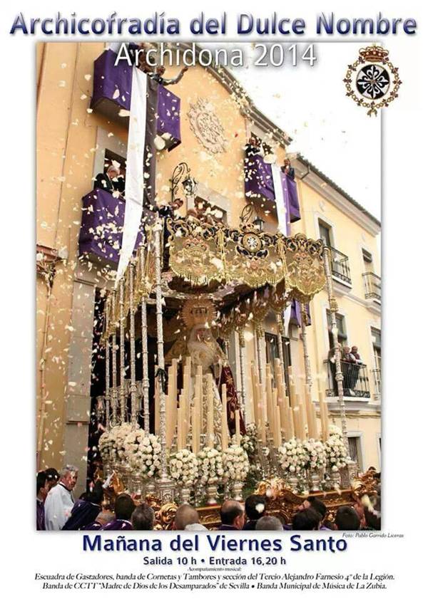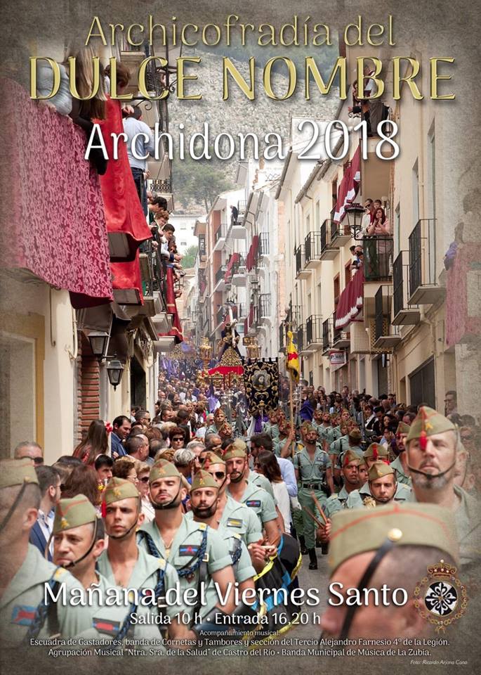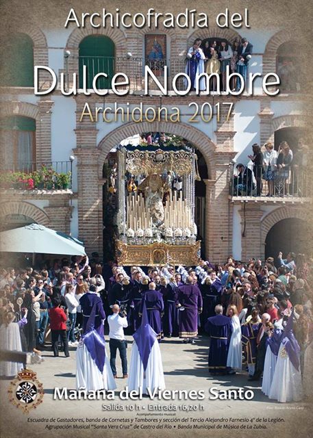 Anoche se presentaba en junta la imagen que anuncia la procesión del Dulce Nombre en la mañana del Viernes Santo archidonés. Fotografía de Ricardo Arjona Cano que capta un momento de la procesión en su bajada por calle Empedrada y en donde salen representados varios elementos de nuestro desfile. Destacar la presencia de la Legión española, que este año cumple su 50 aniversario acompañando a nuestro desfile procesional y que anunciamos, que ya tenemos confirmada su presencia para el 2018. Gracias a Ricardo por cedernos sus fotografias y su trabajo siempre que se le necesita. Quedan 34 días para el Viernes Santo...