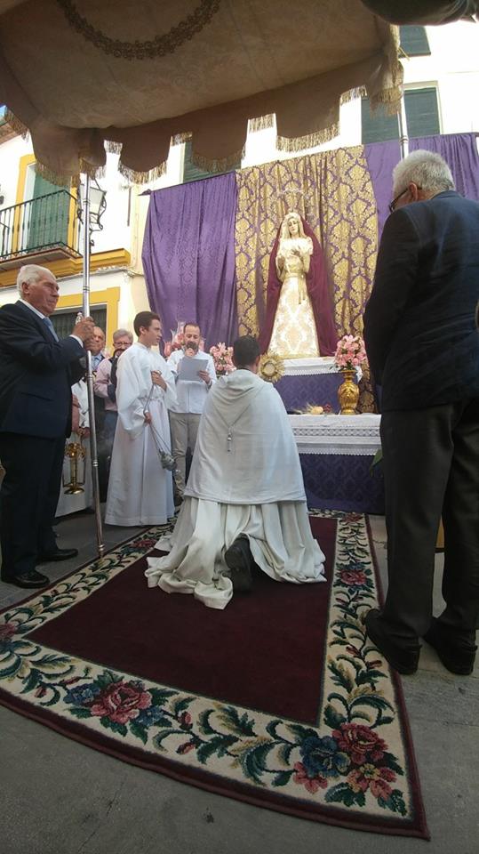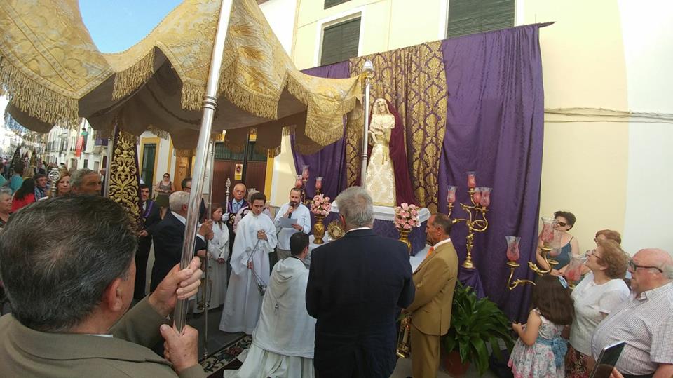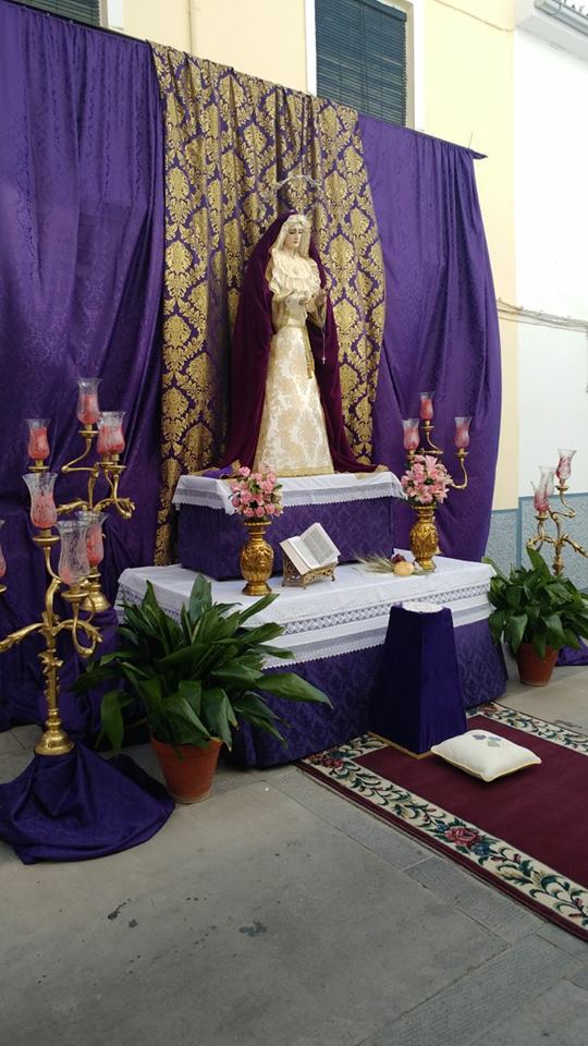 • La Archicofradía del Dulce Nombre realiza un altar para celebrar el Día del Corpus presidido por Nuestra Señora de los Ángeles, preciosa imagen propiedad de nuestro hermano Óscar Montes.