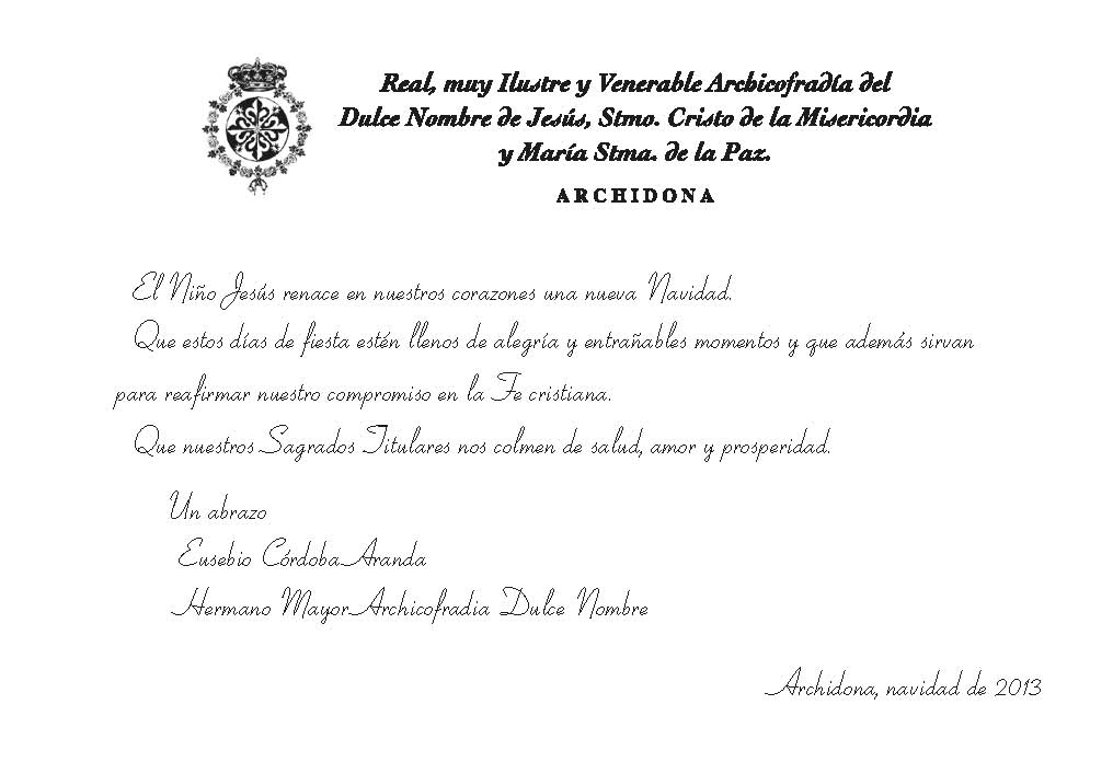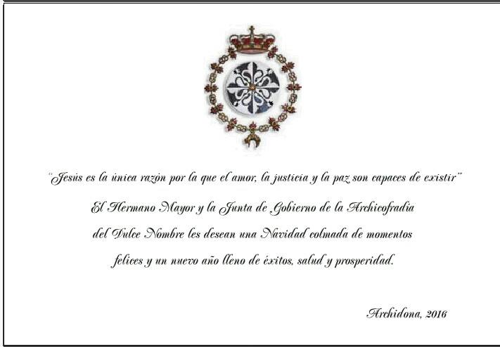 • La Archicofradía del Dulce Nombre os desea Feliz Navidad y un próspero 2018. Que vuestros deseos se hagan realidad. Recordamos que el belén de la Archicofradía está abierto hasta el día 5 de enero (excepto 24 y 31 de diciembre) de 18:30 a 20:30h en nuestra casa hermandad. Os esperamos.