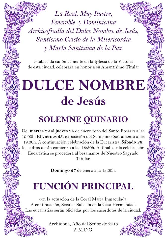 • 22/01/2019. Cultos en honor al Dulce Nombre de Jesús