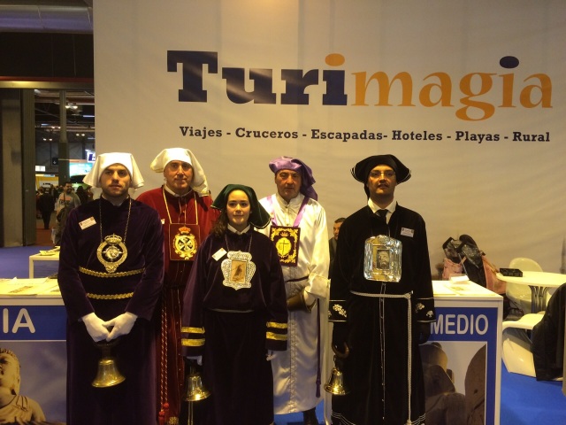 La pasada semana Archidona estuvo representada en la feria de turismo Fitur, en Madrid, y como no, uno de los mayores atractivos turisticos de nuestro pueblo es su Semana Sanata, por ello el ayuntamiento tuco a bien contar con le colaboración de las cofradias que enviaron a cinco campanilleros para que los sonidos típicos de nuestra Semana Mayor llegaran a cualquier lugar. Las fotos, miradas y preguntas a nuestros cofrades no dejaron lugar a duda de la grandeza de nuestras tradiciones.