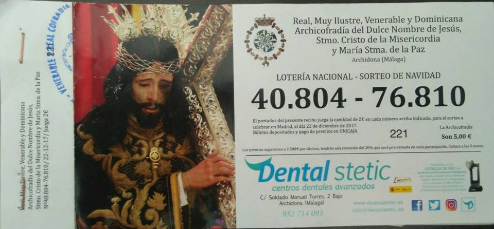 ¡¡¡Gracias a Dental Stetic Archidona Cda por colaborar con nuestra Archicofradía con la realización de las papeletas!!!