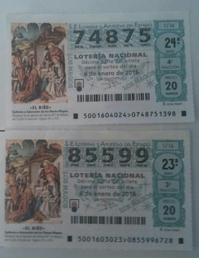 Ya tenemos nuestros dos números a la venta para la Lotería de Navidad. En los establecimientos de Archidona podrás encontrar décimos y participaciones de los mismos. Si eres de fuera y quieres adquirir alguno, ponte en contacto con nosotros.