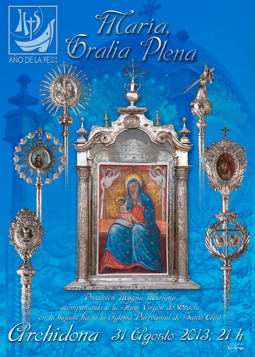 El próximo día 31 del presente mes se celebrará en Archidona una Magna Mariana en la cual participará nuestro titular la Santísima Virgen de la Paz. María Gratia Plena como se denomina la Magna, se compondrá de un cortejo compuesto por las seis vírgenes de las cofradías de pasión de la localidad y de la patrona y alcaldesa perpetua la Virgen de Gracia.