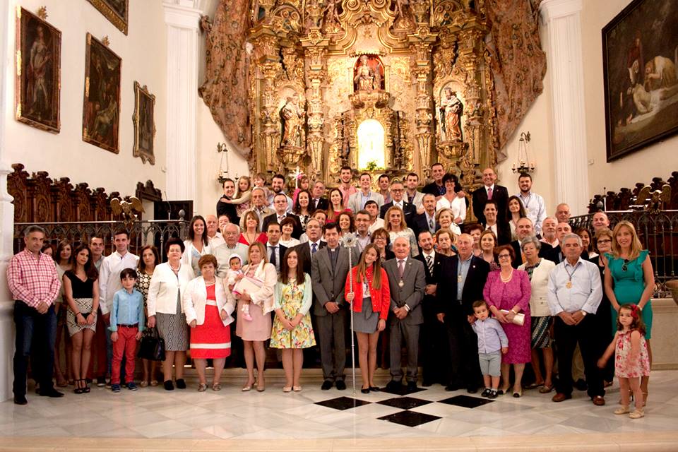 El pasado domingo 1 de junio tuvo lugar el Cabildo Ordinario de la Ascensión, en el cual tomaron posesión los nuevos Hermano Mayor y Sampedro del Niño de la Bola, Óscar Serrano Alzosa y Ángel Toledo Luque, respectivamente. A continuación se procedió al acto de imposición del Escudo de Oro a la cofrade y camarera del Dulce Nombre Rosa Carrera González, en el altar mayor de la Parroquia de Santa Ana. Desde la Archicofradía del Dulce Nombre queremos dar la bienvenida a los nuevos cargos así como la enhorabuena a Rosa por la máxima distinción obtenida y toda su trayectoria cofrade.