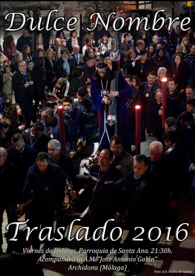 Queremos agradecer a todos los hermanos y devotos en general que nos acompañaron, dentro o fuera de la procesión. A la Banda Municipal "Jose Antonio Galán", que por primera vez pusieron las notas musicales a nuestro Traslado con la solemnidad y respeto que así se merece realzando aún mas el acto. Y al pueblo de Archidona, por demostrar una vez más el inmenso cariño y devoción hacia nuestros Sagrados Titulares.