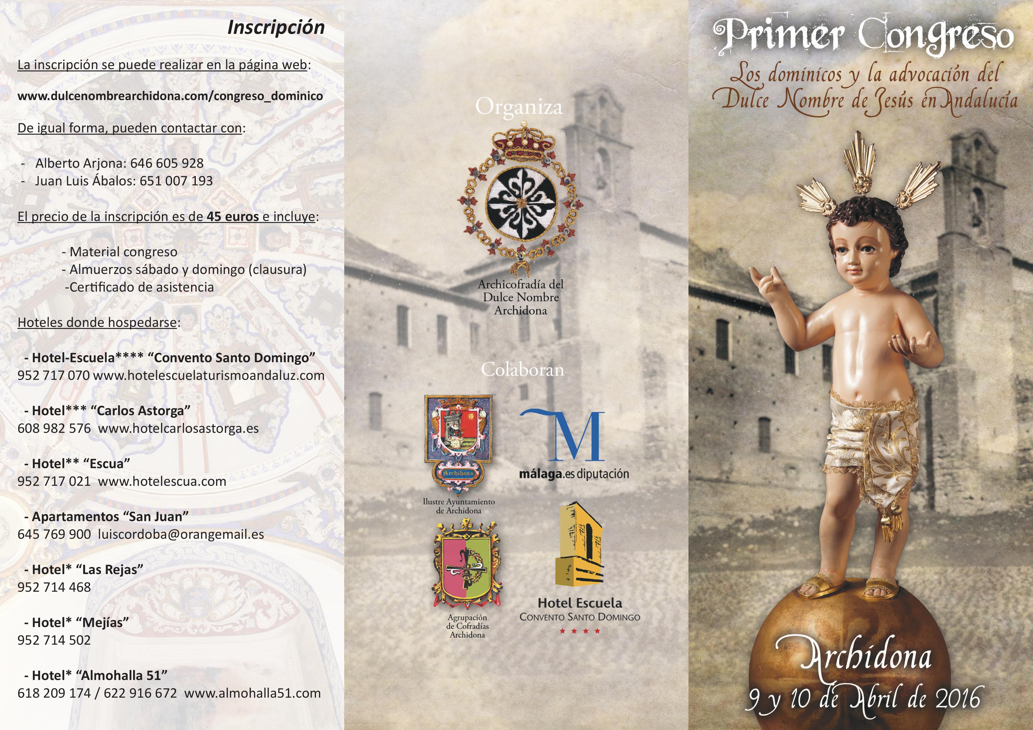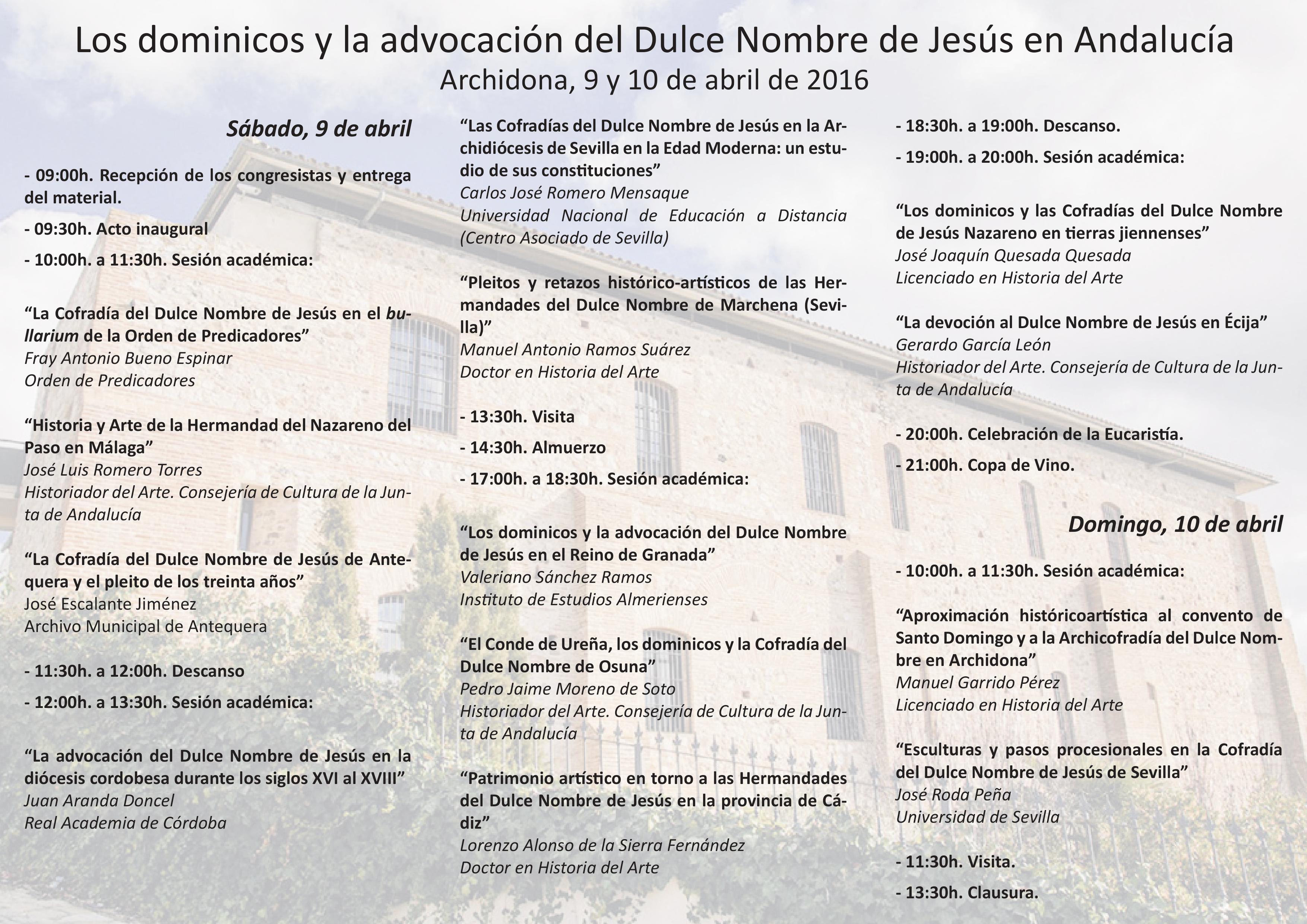 • Tras el Congreso " Los dominicos y la advocación del Dulce Nombre de Jesús en Andalucía" celebrado el pasado año en nuestra localidad, nuestra Archicofradía ha editado un libro donde se recogen, en 336 páginas,todas las actas de la ponencias escuchadas en la antigua iglesia de Santo Domingo. Si quieres adquirir algún ejemplar ponte en contacto con nosotros a través de un privado. El precio del libro es 12€.