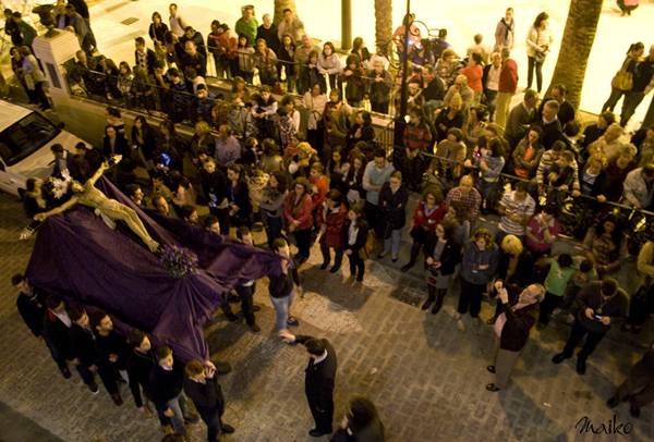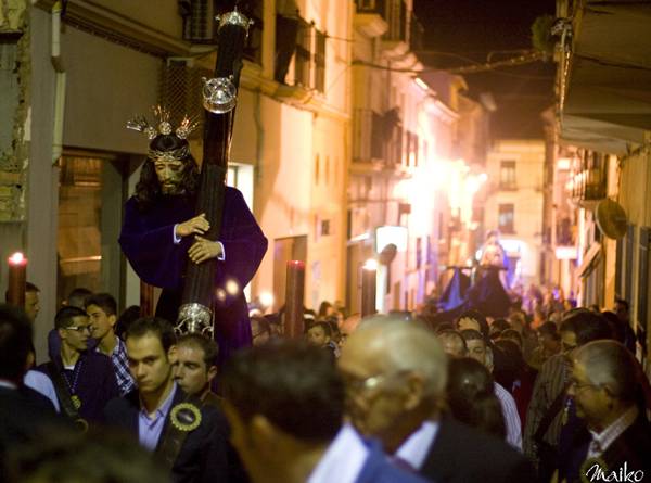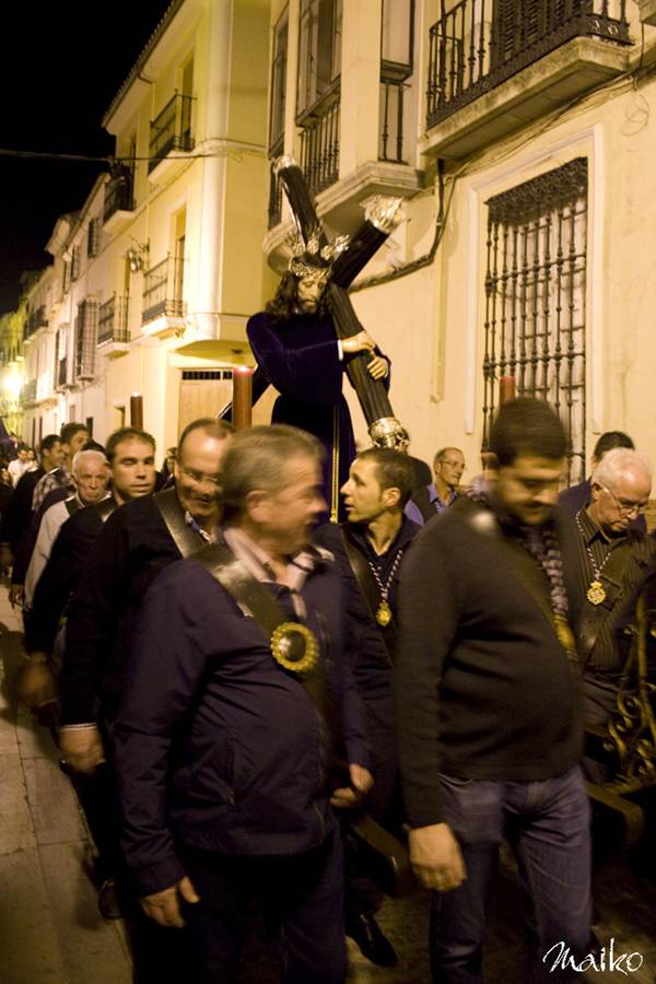 La Archicofradía del Dulce Nombre efectúa su salida procesional desde la Casa Hermandad. La noche del Viernes de Dolores tiene lugar el Solemne Traslado de Imágenes. Se forma un cortejo encabezado por la cruz guía y los campanilleros, tras los cuales acompañan numerosos hermanos alumbrando por todo el recorrido. La sobriedad y recogimiento es reinante en todo el trayecto, como contrapunto de lo que supone la mañana de Viernes Santo.
