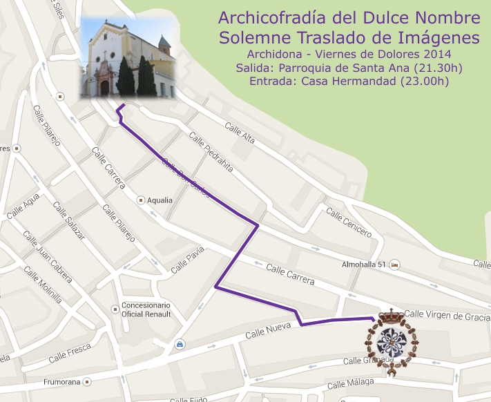 Debido al cierre temporal de la Iglesia de la Victoria por reformas, el traslado de este año 2014 modifica su recorrido pasando a ser el siguiente: